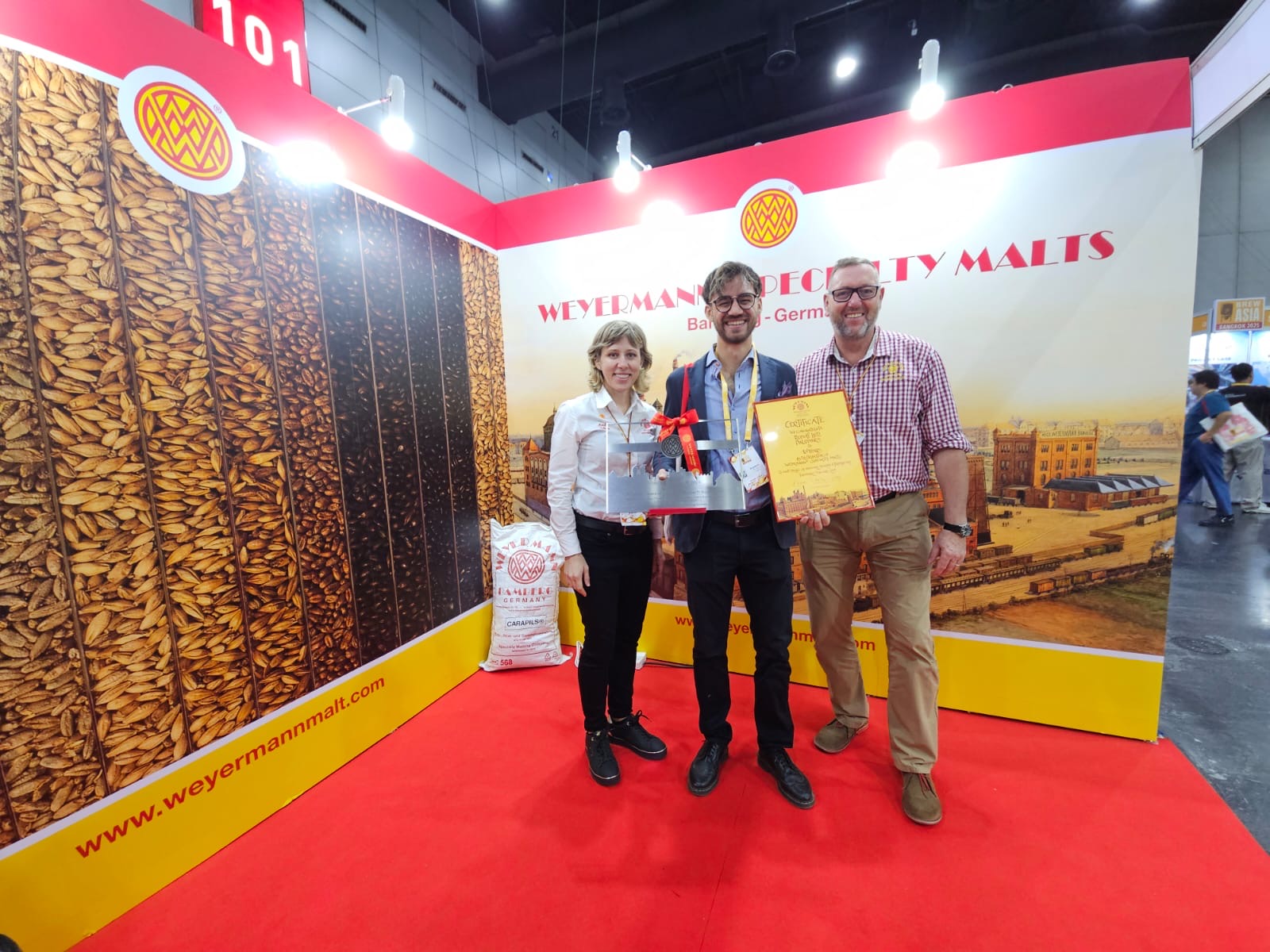 In October, our Weyermann® ambassadors Axel Jany and Monika Schmitt attended Brew Asia in Bangkok. At the newly designed booth #D5, featuring a strong Weyermann® brand identity, they showcased the diversity and quality of our Weyermann® specialty malts and brought the Weyermann® spirit directly to brewing professionals and beer enthusiasts from across Asia. They were supported at the booth by Palrapii Mint Tongkam, owner of our Thai distribution partner, Rowatthai Co., Ltd.